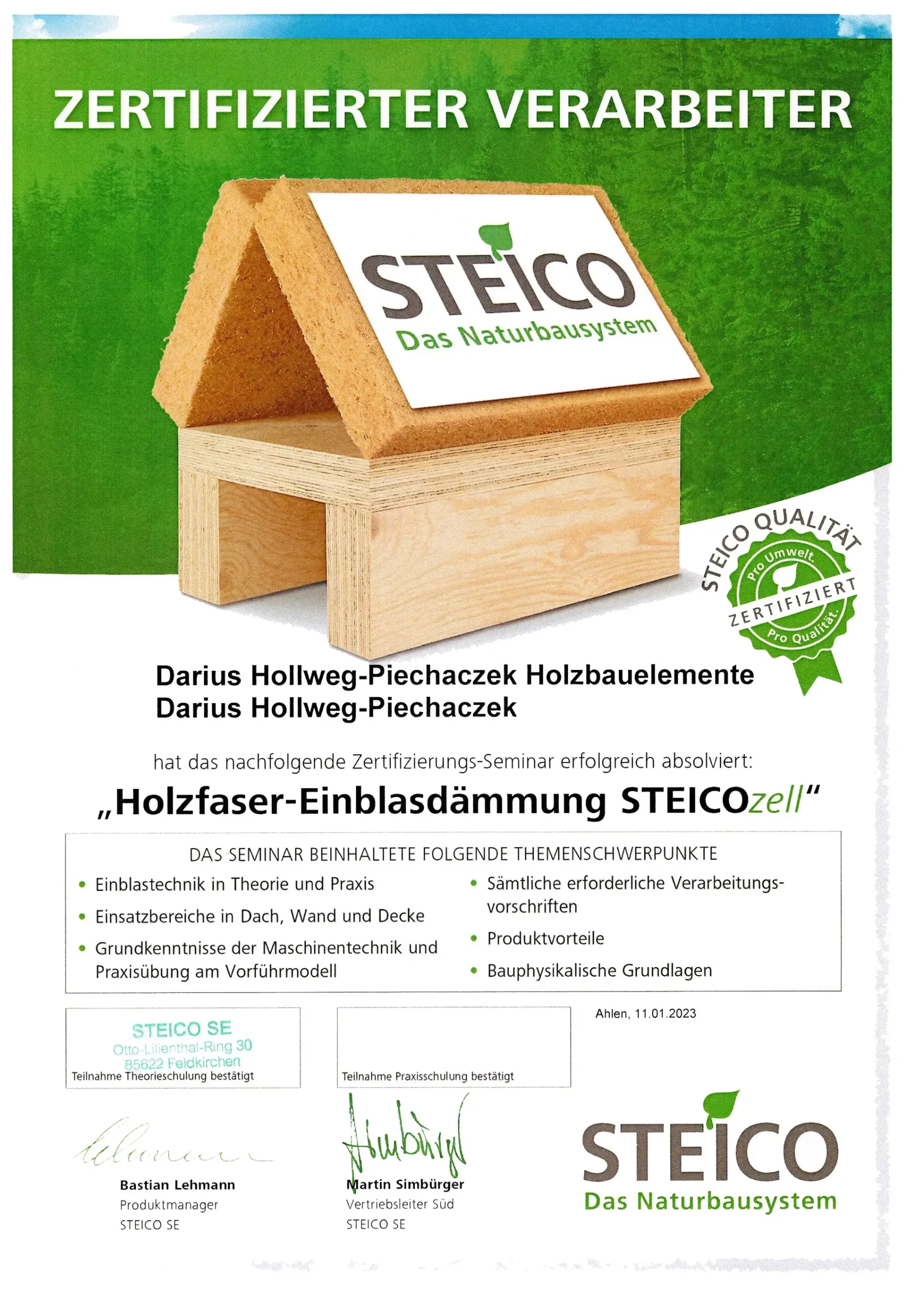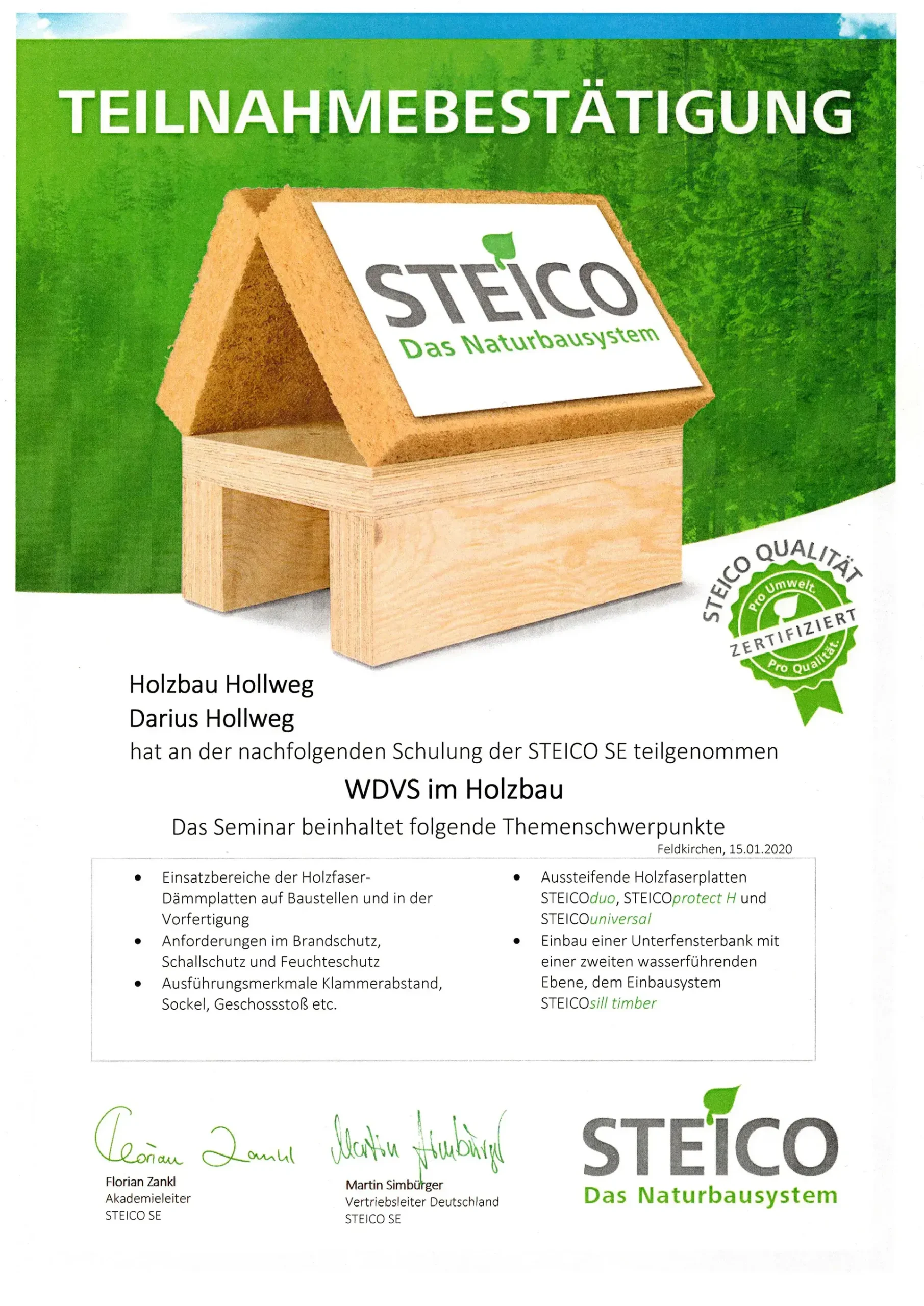 Seit der Weiterführung durch Darius Hollweg im Jahr 1999 steht Holzbau Hollweg für eine persönliche Betreuung, kurze Entscheidungswege und eine enge Zusammenarbeit mit Kunden und Partnerbetrieben. Durch die Kombination aus handwerklicher Erfahrung, stetigen Fortbildungen und moderner Technik entstehen Lösungen, die individuell geplant und sauber umgesetzt werden. Regelmäßige Weiterbildungen sorgen dafür, dass neue Materialien, aktuelle Verarbeitungstechniken und zeitgemäße Systeme fachgerecht in die tägliche Arbeit einfließen können.
