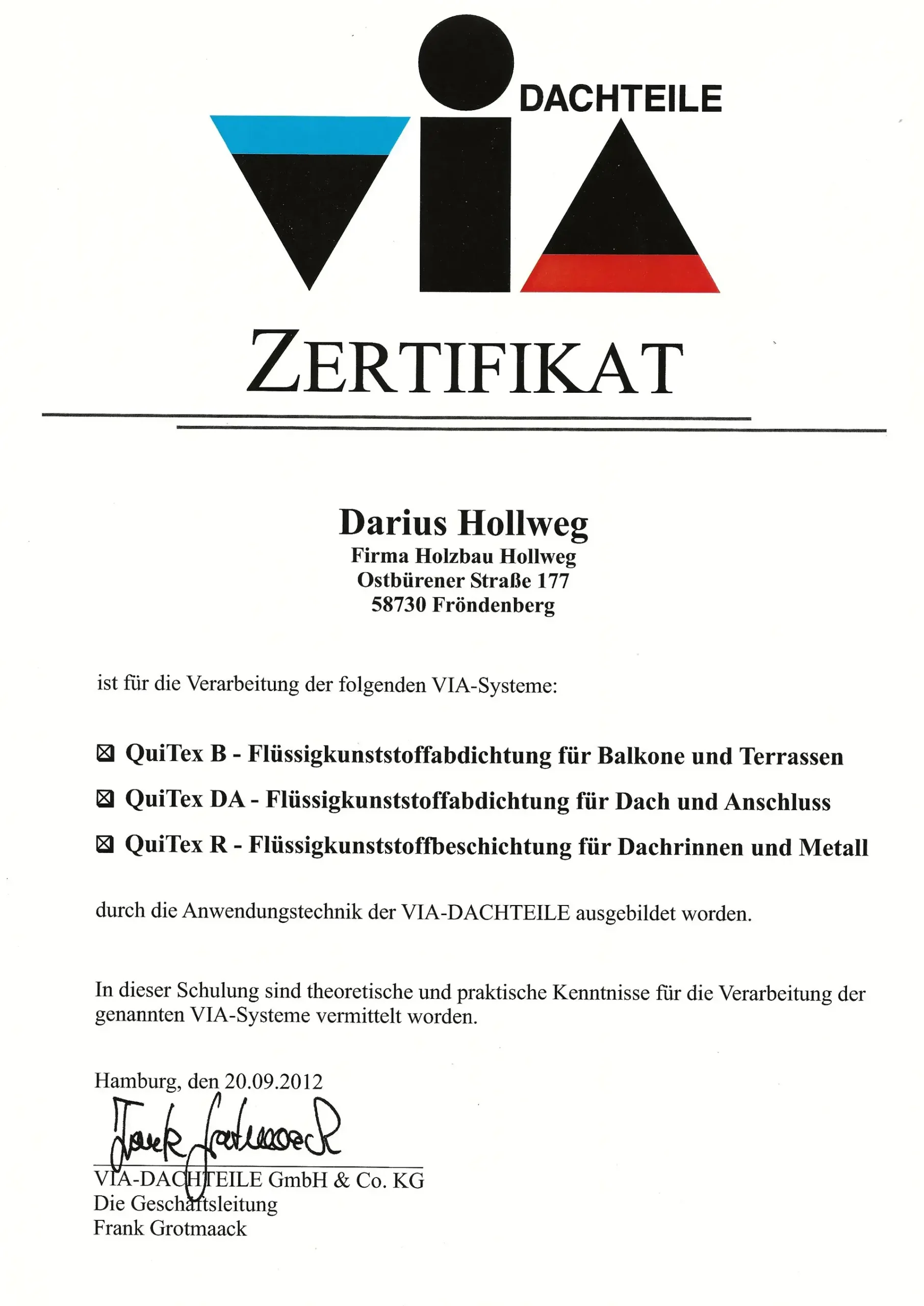 Holzbau Hollweg steht seit vielen Jahren für handwerkliche Qualität, zuverlässige Planung und langlebige Bauausführungen rund um Holzbau, Sanierung und moderne Außenbereiche. Das Unternehmen wurde im Jahr 1986 von Klaus Hollweg gegründet und wird seit 1999 von Darius Hollweg weitergeführt. Diese langjährige Erfahrung verbindet traditionelles Handwerk mit modernen Bauweisen und aktuellen technischen Lösungen. Ziel ist es, Bauprojekte nicht nur optisch ansprechend, sondern vor allem technisch sinnvoll und dauerhaft stabil umzusetzen.