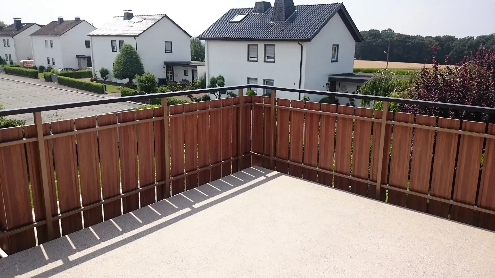 Je nach Ausführung lässt sich der Sichtschutz funktional in das Geländer integrieren und optisch an die Gestaltung des Gebäudes anpassen. Dadurch entsteht nicht nur mehr Privatsphäre, sondern auch ein geschützterer und angenehmer nutzbarer Außenbereich.