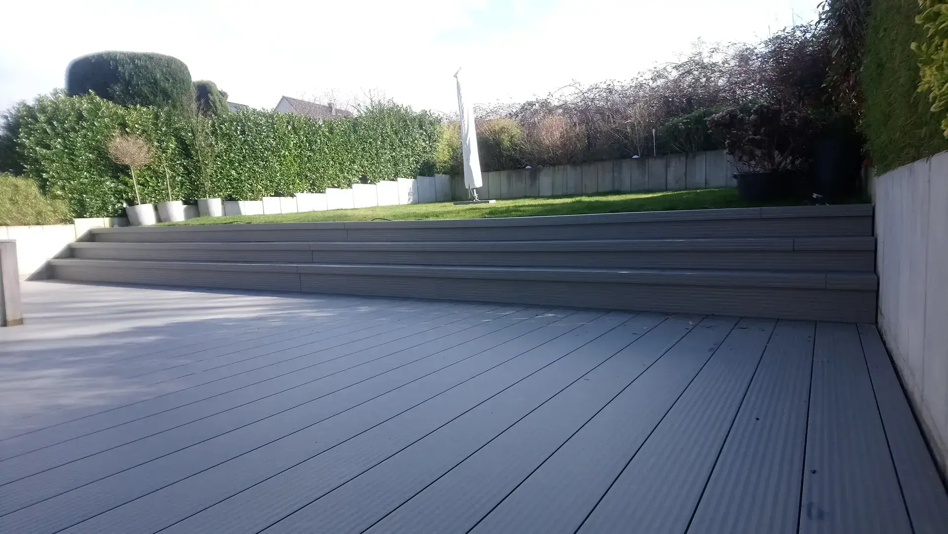 WPC-Terrassen kommen sowohl im privaten Gartenbereich als auch bei größeren Außenanlagen zum Einsatz. Besonders geeignet sind sie für Flächen rund um das Haus, Dachterrassen oder Bereiche mit moderater Belastung.