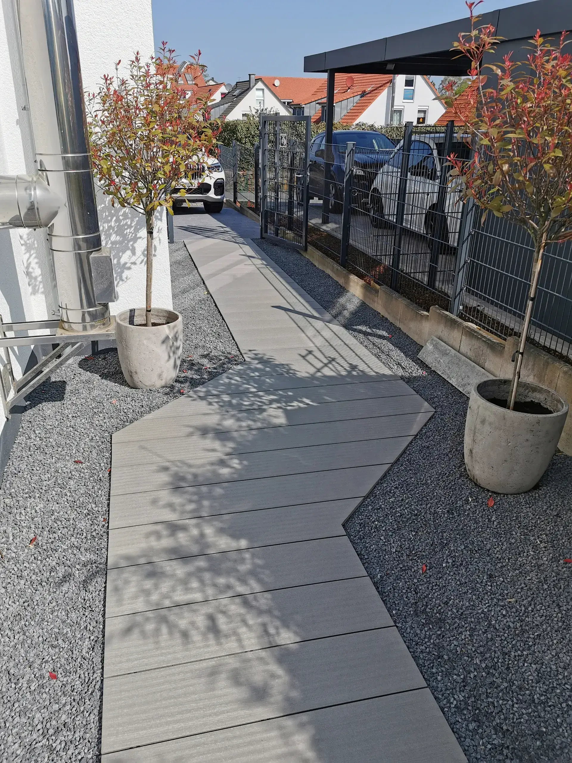 Regelmäßige Reinigung und eine gute Belüftung der Konstruktion reduzieren dieses Risiko. Auch Übergänge zu bestehenden Belägen sollten sorgfältig geplant werden, damit keine Stolperkanten entstehen und die Fläche durchgehend nutzbar bleibt.